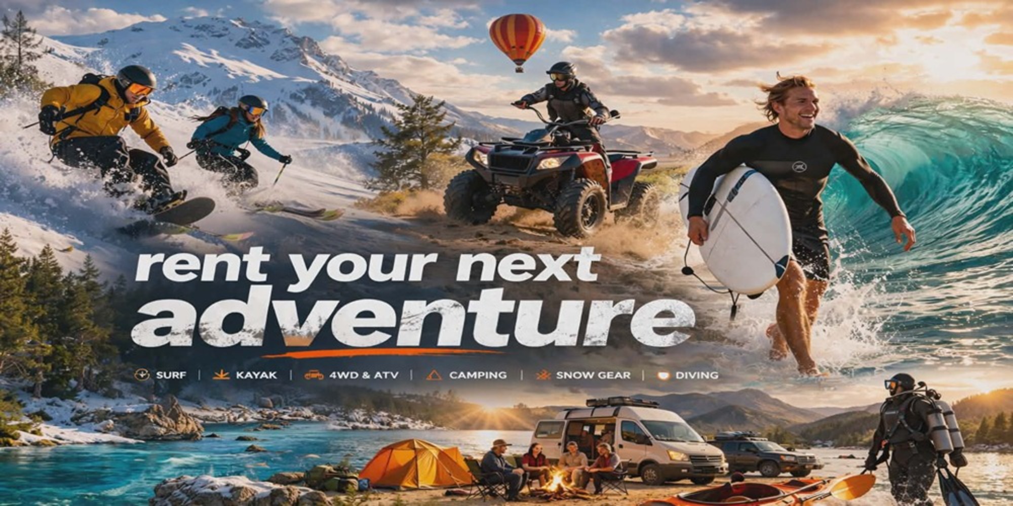 Surfboards, Kayaks, Camping kits, 4WD accessories, Snow gear, and more, depending on the location